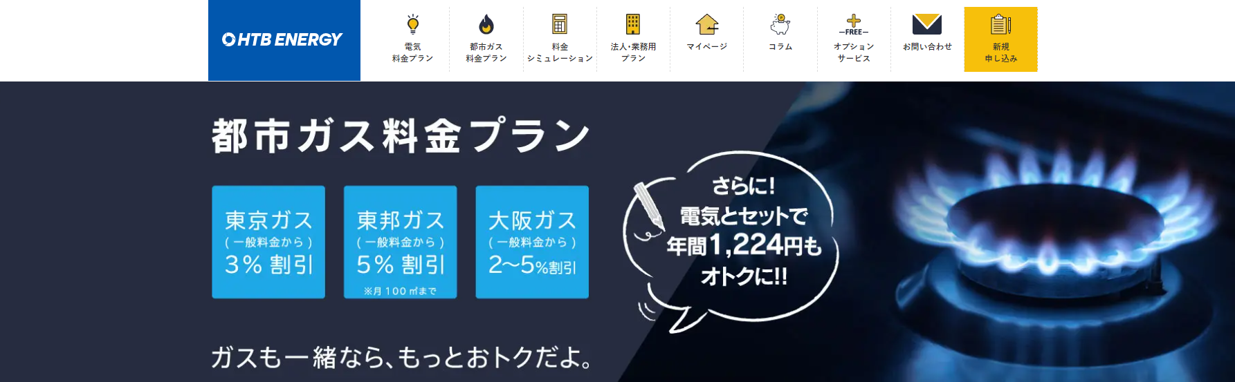 | HTBエナジー | ガス代が毎月102円割引 |
